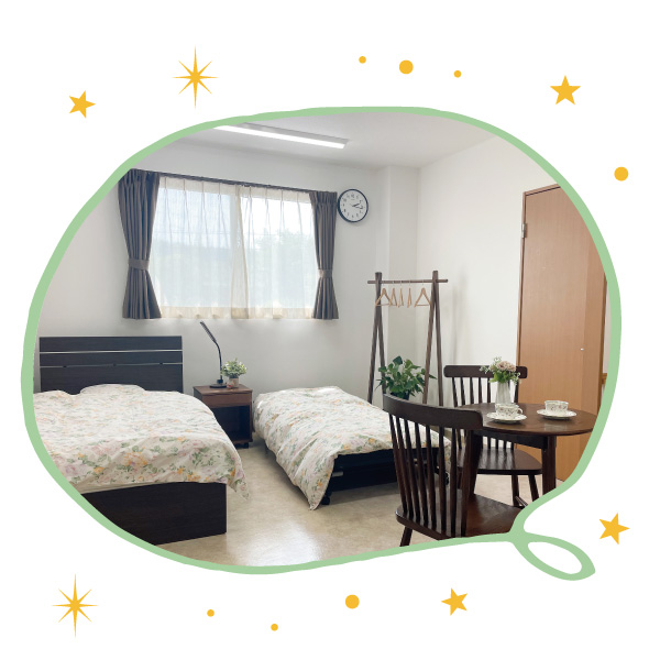 A:はい。可能です。ご夫婦の2人部屋という形ではありませんが、入居可能です。また、その時の部屋の空き状況によりますが、空きがあれば隣同士などの対応も可能になってきます。一度ご相談ください。